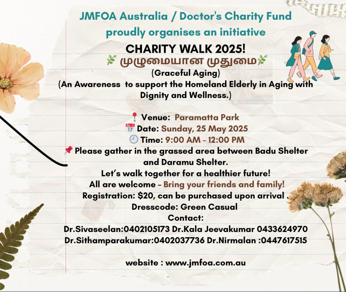 Featured May 25, 2025 @ 9:00 am - 12:00 pm JMFOA Charity Walk | Sydney – 2025 Paramatta Park Sydney $20
