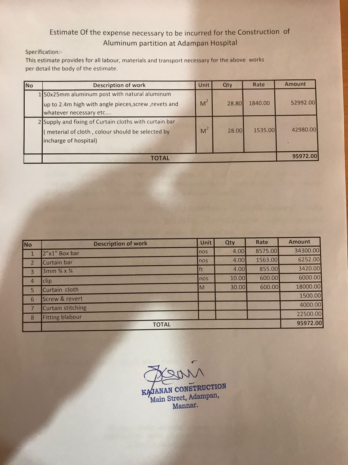 Donation on getting new land for Children Hospital at Innuvil -Donated $5000