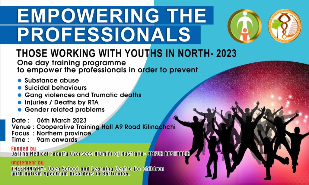 As part of our ongoing support for the fight against substance abuse, we collaborated with local authorities ( Mental health professionals, Government stakeholders ) to conduct a full-day training program for selected people who work with youth in Northern Sri Lanka. The project aims to empower these professionals to identify and prevent